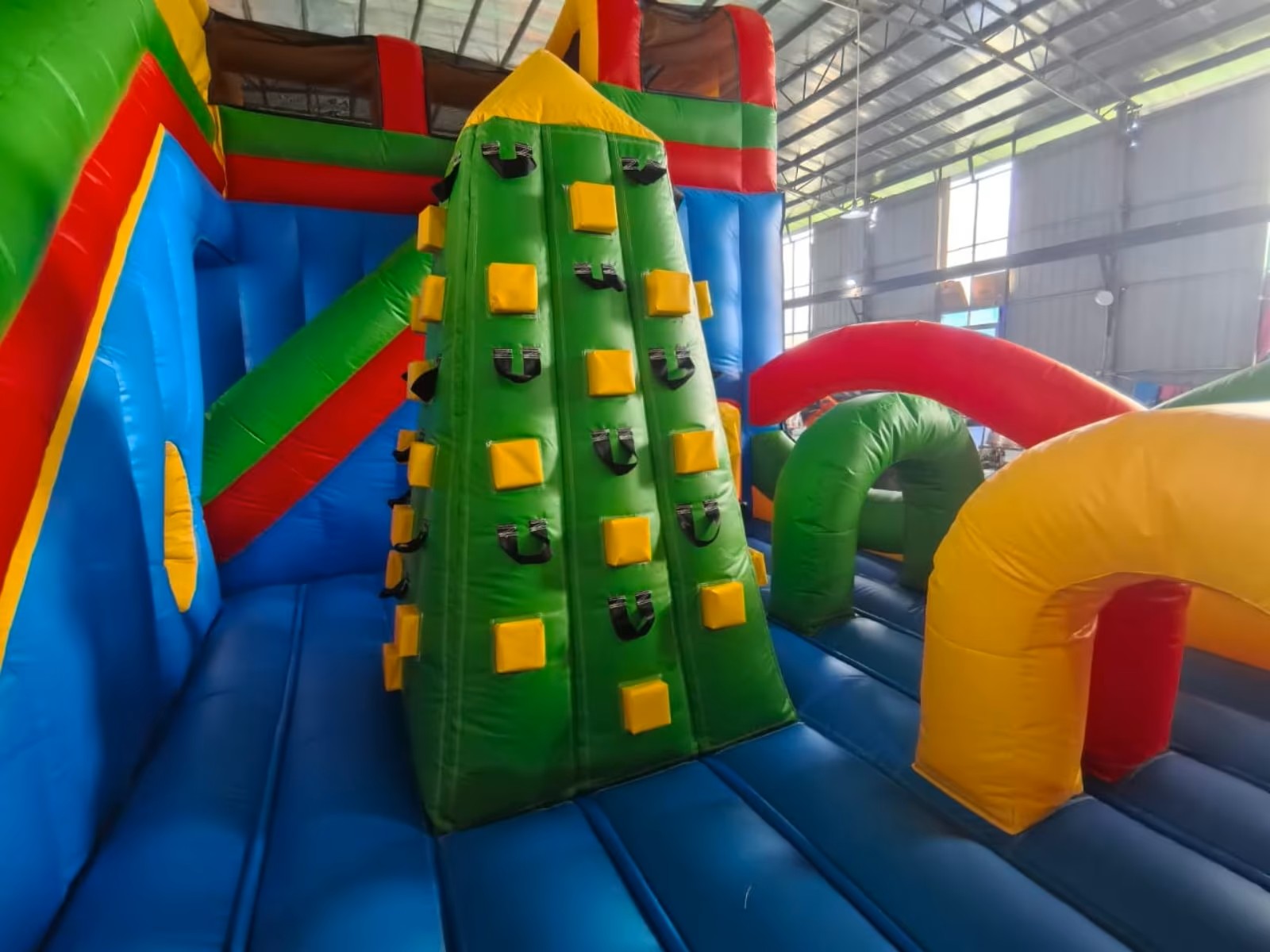 Die Hüpfburg (E) Multiplay mit Rutsche, Tunnel und Kletterturm ist ein wahres highlight für Klein und Groß. Mit ihr Größe und der fröhlichen Farbgestaltung ist die Multiplay Hüpfburg ein absoluter Hingucker auf deiner Privatveranstaltung oder auch Straßenfesten, Tag der offenen Tür usw. Durch die angebrachten Spielelemente und dem Kletterturm bietet dieser Playground viel mehr als nur Hüpfen und Rutschen!